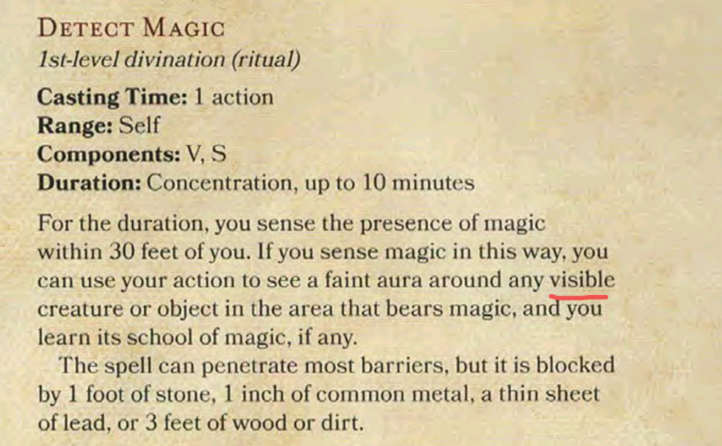 Edit: TIL that detect magic may not work, because the object has to be visible.